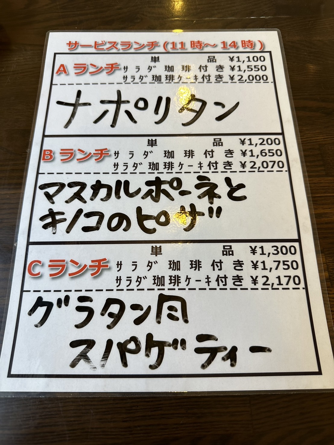 (※サービスランチは日によって内容が変わります)