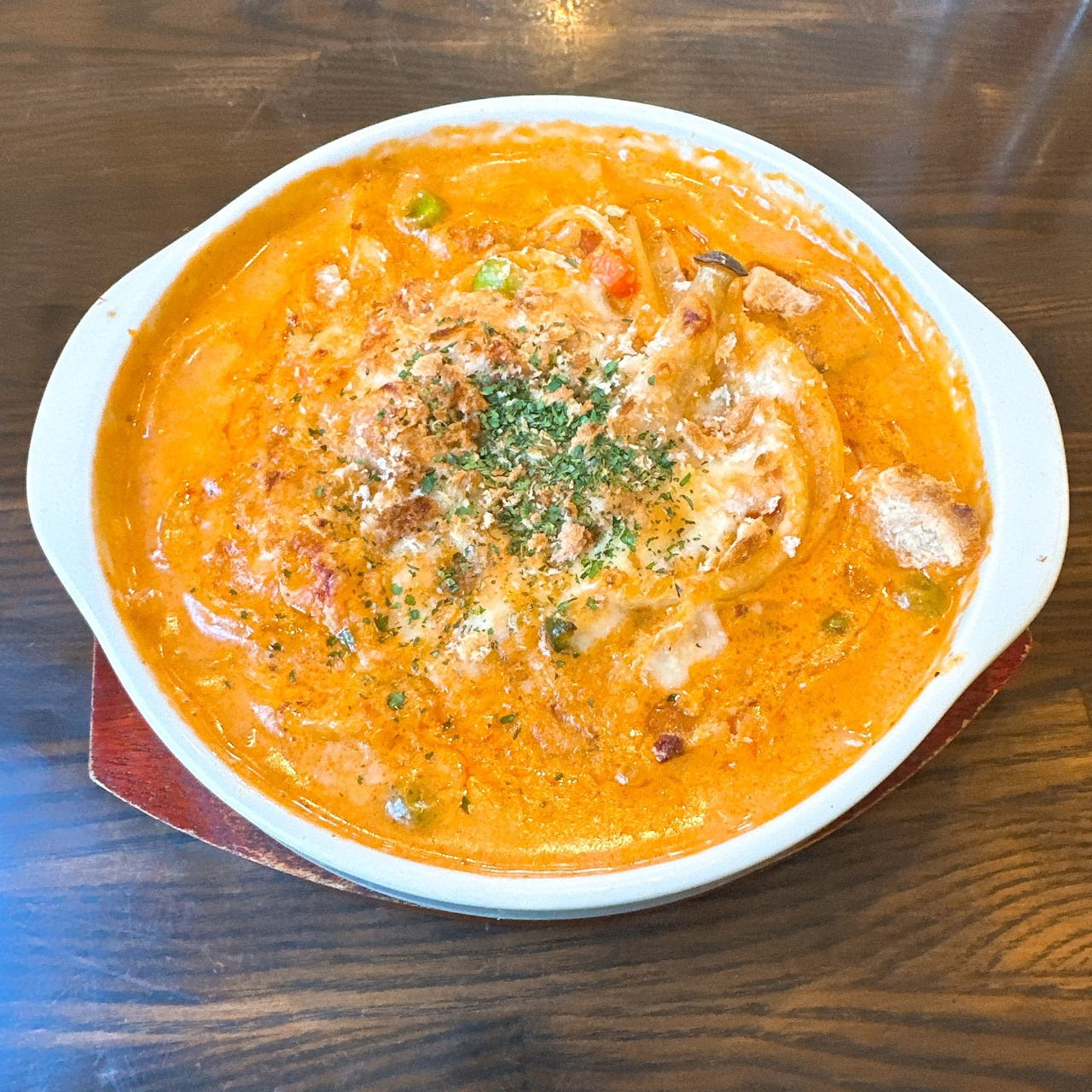 トマトクリームの濃厚なソースとチーズがマッチしてとてもおいしいです♪