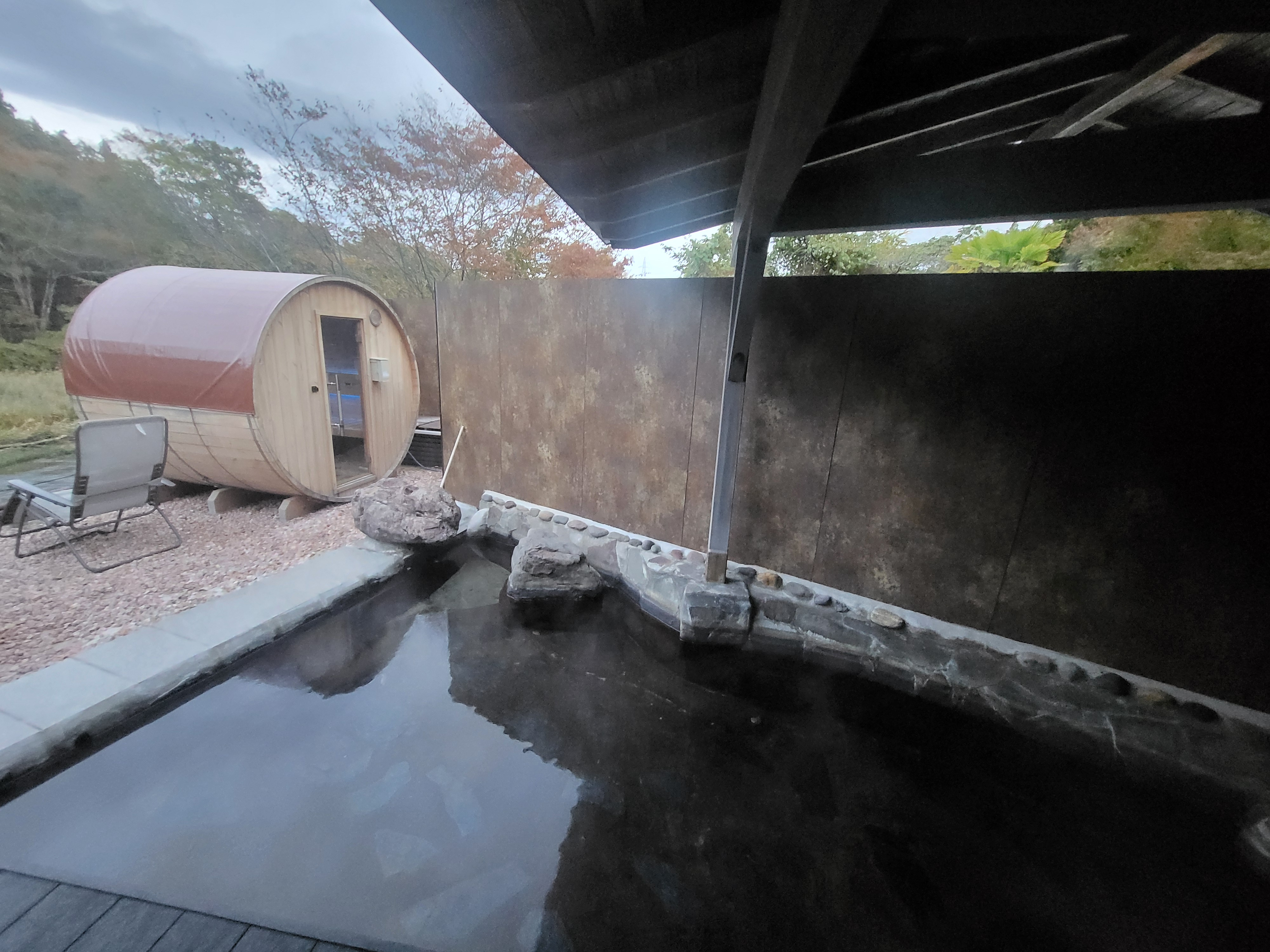 バレルサウナに入った後、目の前に流れている川を見ながらととのえるのは最高ですね。